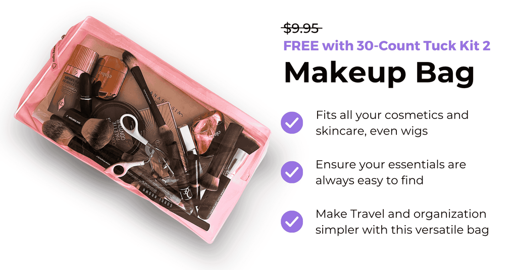 Each Tuck Kit comes with individually wrapped all-in-one Tuck Kits each including a T-Tape strip and a cotton pad. Easily fold one into a purse to bring a spare tuck with you on the go!